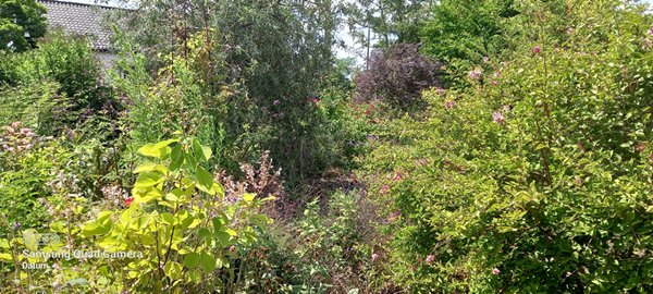 Op een hoek van de weg, omringd door weilanden ligt een grote privétuin. Aansluitend heeft de eigenaar een stuk tuin ernaast afgestaan als openbaar gebied. Beide tuinen hebben veel bijzondere bomen, struiken en vaste planten.Te zien zijn o.a. een rode berk, notenbomen, Sphaeralcea en ook veel grassen.Over houtsnipperpaden loop je bijna door de borders heen. Hier is zoveel bijzonders te bewonderen!